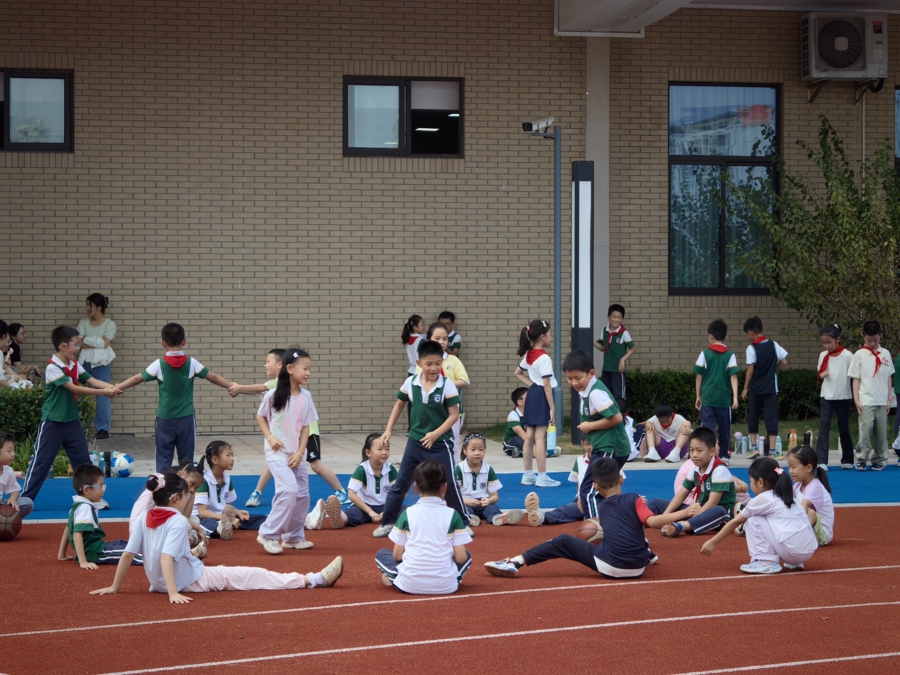 操场上的篮球场、被孩子们亲切称为“花果山”的器材区和周围的跑道上,也都是尽情“放飞”的初中生和小学生。